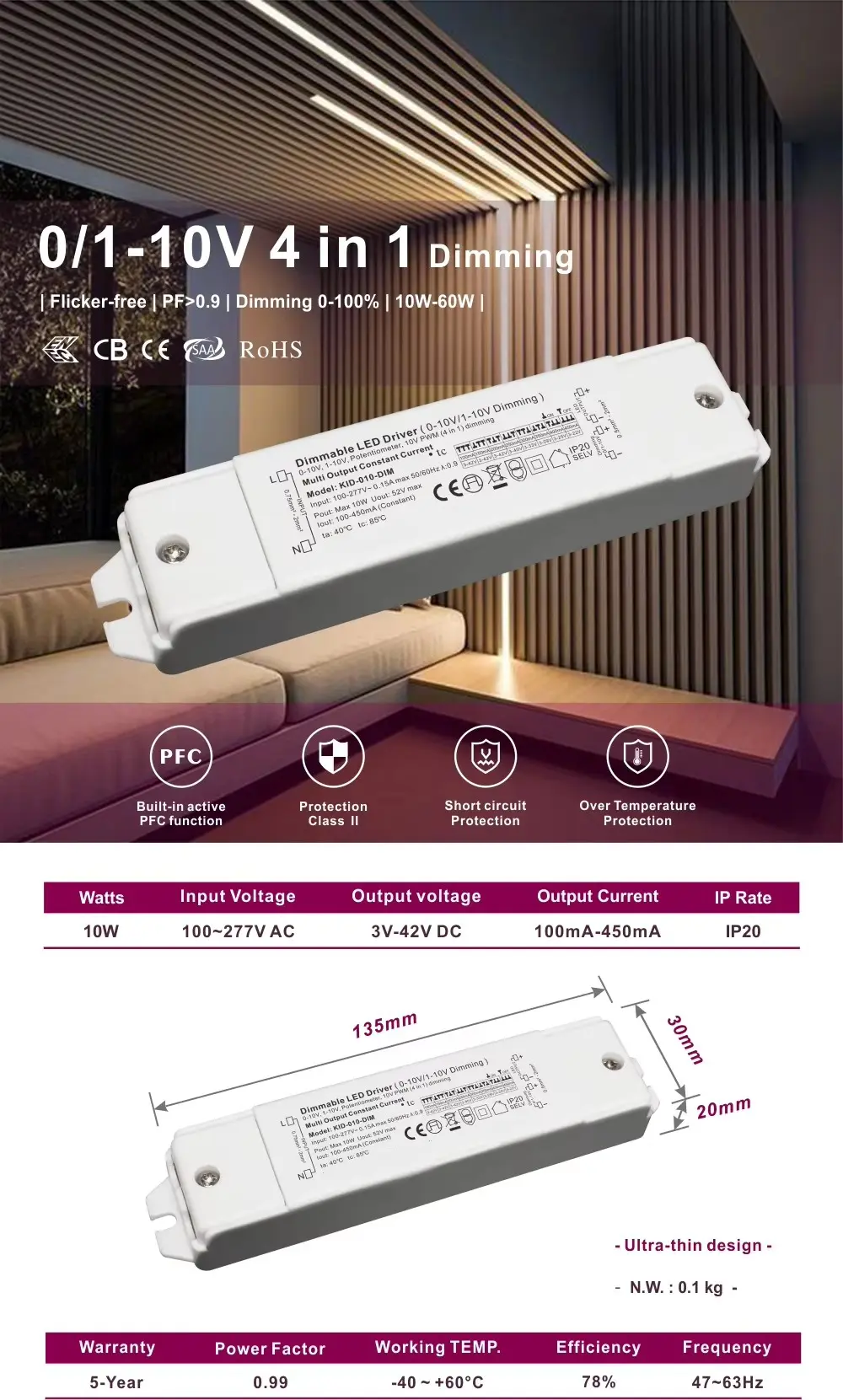 المنزل الذكي والمشروعات التحديثية: قم بتوصيل وحدات التحكم الذكية (مخرج PWM) بمشغلات أو تركيبات LED التقليدية القابلة للتعتيم بجهد 0-10 فولت دون مشاكل في التوافق.