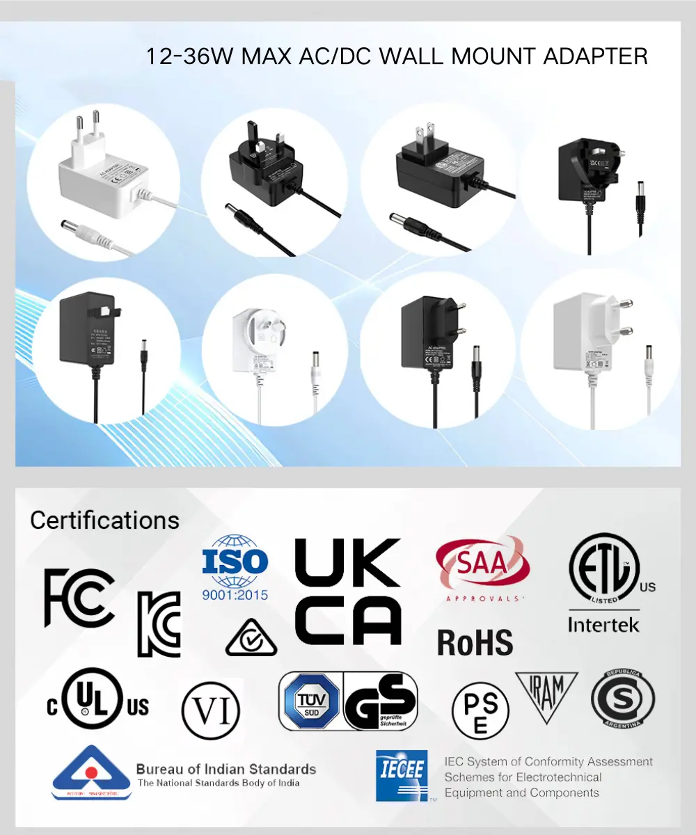 يوفر تصميم المكونات الإضافية المدمج المساحة. يوفر محول طاقة ثابت ومتسق بقدرة 12 وات، وهو مناسب تمامًا لأجهزة التوجيه ومفاتيح الشبكة وشرائط LED والعديد من الأجهزة الأخرى.