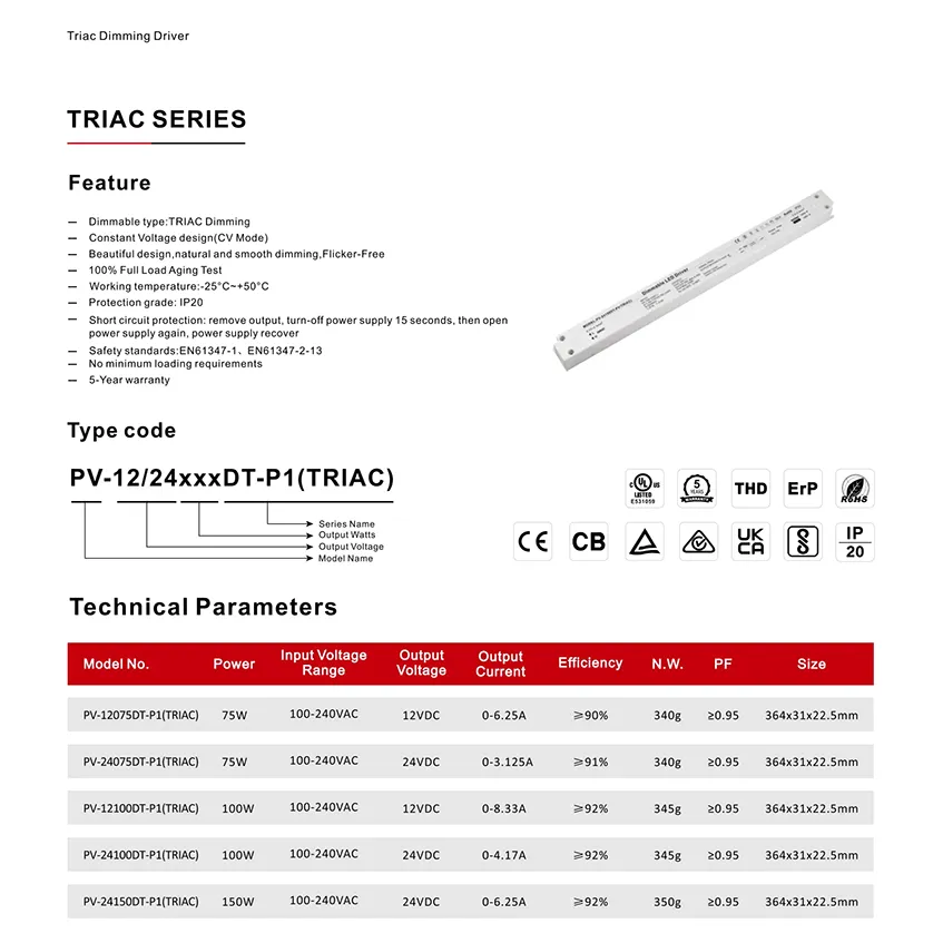 أداء متقدم للتطبيقات الصعبة تم تصميم برنامج التشغيل LED القابل للتعتيم بجهد 24 فولت وفقًا للمواصفات الفنية. ويتميز بمدخل تيار متردد عالمي (100-250 فولت)، مما يضمن التوافق مع شبكات الطاقة في جميع أنحاء العالم. بفضل الكفاءة العالية التي تصل إلى 90% وتصحيح عامل الطاقة (PFC) الذي يتجاوز في كثير من الأحيان 0.95، فإنه يقلل من هدر الطاقة ويقلل الحمل على النظام الكهربائي الخاص بك. جوهر وظيفتها هو تقنية التعتيم TRIAC (القطع المرحلي) المتقدمة، والتي تتيح تعتيمًا سلسًا وخاليًا من الوميض من 0% إلى 100% عند إقرانها بمخفتات الإضاءة القياسية على الحائط، مما يسمح بخلق أجواء مثالية. ولضمان المتانة في البيئات المختلفة، يتم تقديمه في حاويات تتراوح من معيار IP20 إلى هيكل ألومنيوم قوي بتصنيف IP67، مما يوفر الحماية من الغبار والرطوبة للاستخدام الداخلي والخارجي.