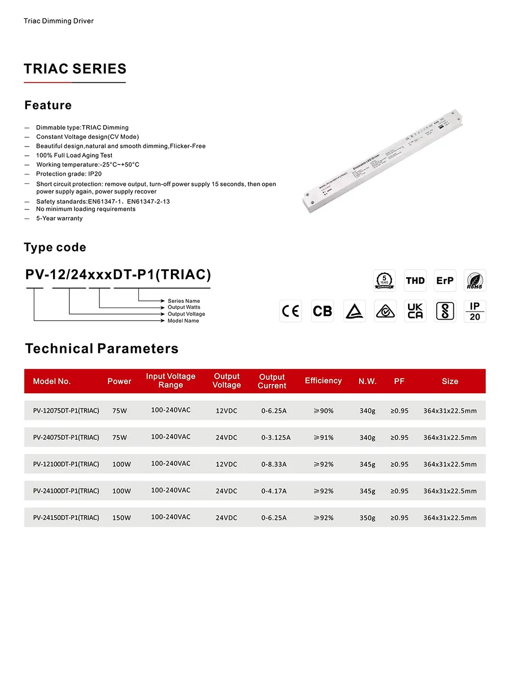 مواصفات برنامج تشغيل Starwell المستمر الجهد Triac Dimmable LED: