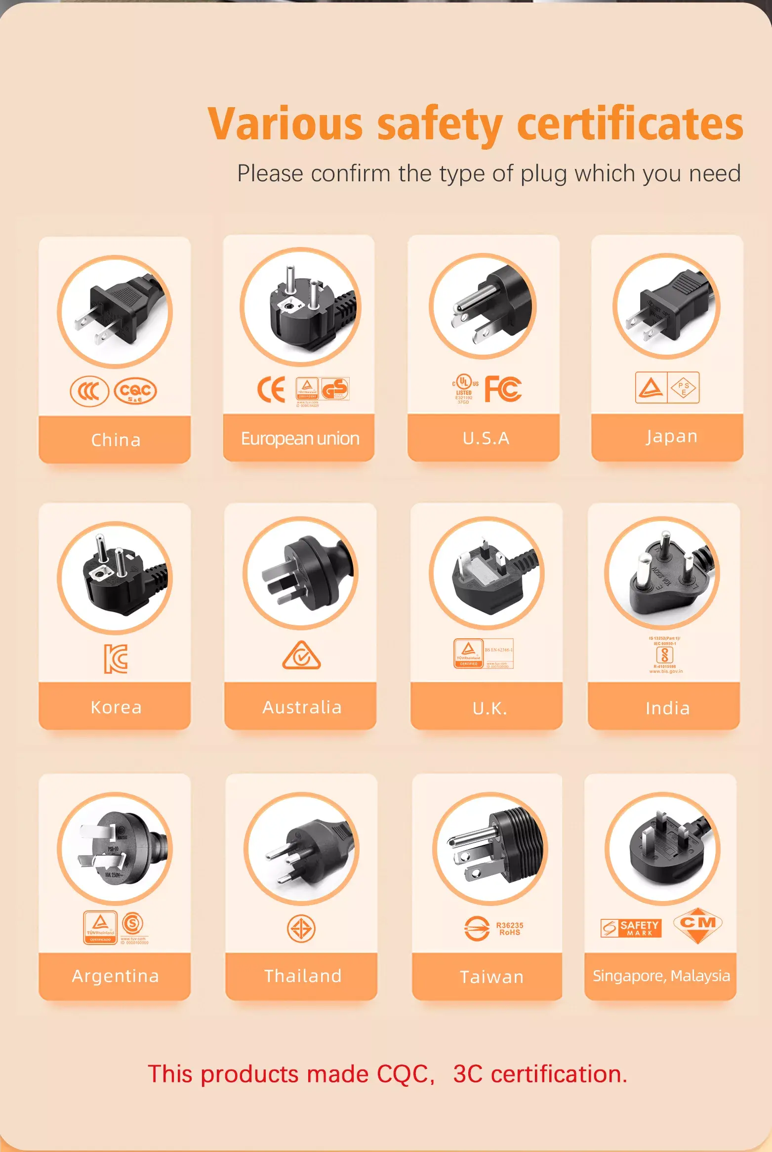 نوع التوصيل: قابس الولايات المتحدة، قابس الاتحاد الأوروبي، قابس المملكة المتحدة، قابس الاتحاد الأفريقي