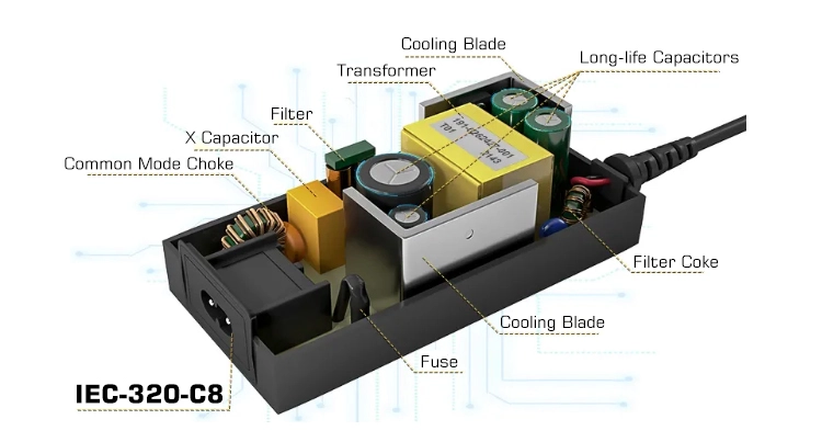 محول AC-DC عالي الطاقة لسطح المكتب بقدرة 150 وات
