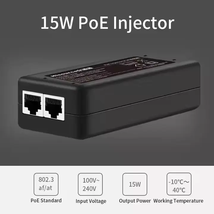 يدعم الجهد العالمي 100-240 فولت، يعمل محول IEEE 802.3af PoE بقدرة 15 وات في جميع أنحاء العالم. بالإضافة إلى ناقل الحركة PoE بطول 100 متر، فإنه يتيح التثبيت المرن ويستخدم على نطاق واسع كحاقن PoE ثابت لسطح المكتب لأنظمة المراقبة والشبكات.