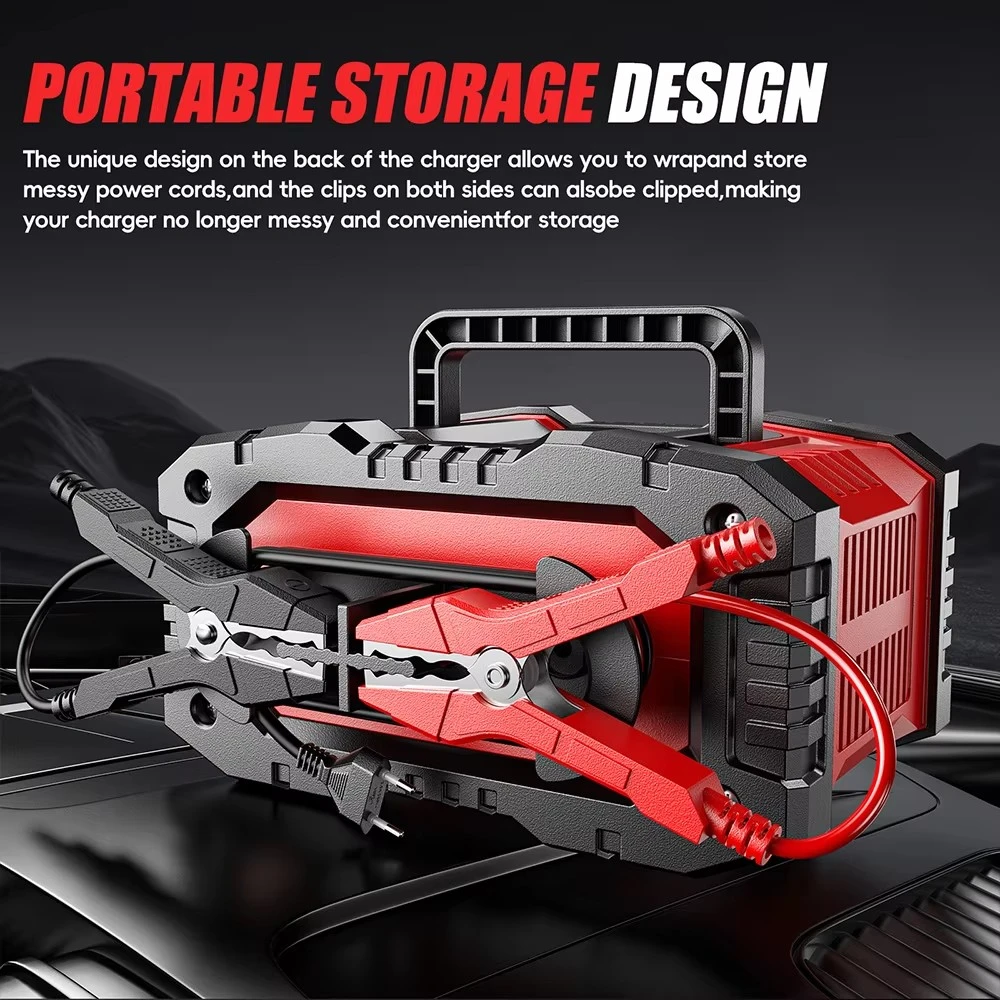 توافق واسع للبطارية يدعم جميع كيميائيات حمض الرصاص الرئيسية - المغمورة، والهلامية، والخالية من الصيانة، وAGM، وLiFePO₄ (فوسفات الحديد الليثيوم) - وهو يعمل مع بطاريات البداية، وبطاريات الدورة العميقة، والبطاريات البحرية، وبطاريات Powerport. يغطي الشاحن الواحد كل شيء تقريبًا في المرآب أو ورشة العمل الخاصة بك.