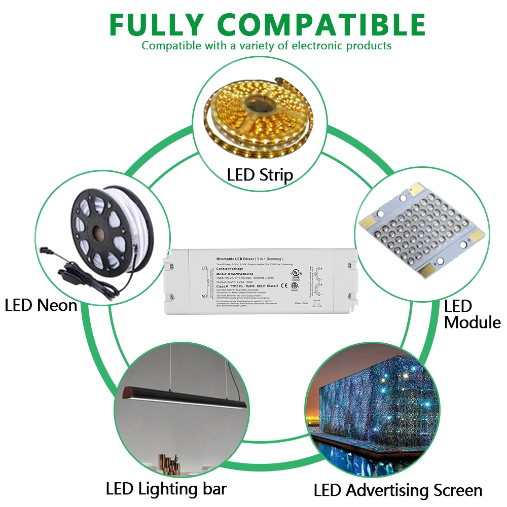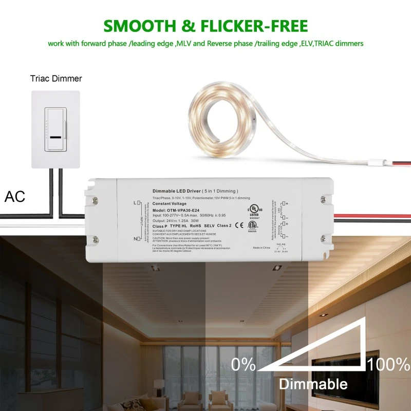 3. كفاءة عالية وتوفير الطاقة: يتمتع محرك STARWELL عالي الجودة بقدرة 30 وات 24 فولت Triac Dimming LED بكفاءة تحويل تصل إلى 88% واستهلاك منخفض للطاقة مع طاقة عدم تحميل تبلغ ≥ 0.5 وات، مما يساعد على تقليل تكاليف الطاقة على المدى الطويل.