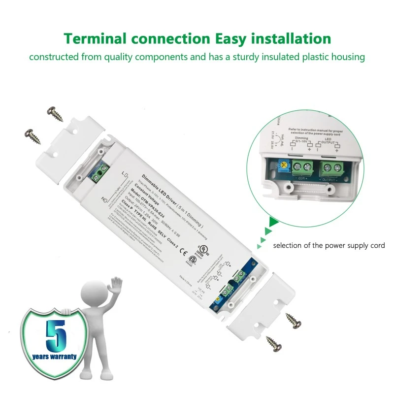 يمكن لمشغل LED ذو الجهد الثابت 24V 30W 0-10V من مصنع STARWELL توفير طاقة خرج قصوى تصل إلى 30W وهو مصمم خصيصًا لتحقيق تحكم سلس في التعتيم من 0 إلى 10V. إنه يتميز بإخراج جهد كهربائي مستقر مع معامل تموج ≥ 120mVp-p، مما يضمن أداء الإضاءة الخالي من الوميض لتركيبات LED. نطاق جهد الإدخال الخاص به واسع (100-240 فولت تيار متردد، 50/60 هرتز)، مع كفاءة تحويل تصل إلى 88%، مما يتيح التشغيل الموفر للطاقة. كما أنه يتوافق مع معايير الجهد العالمية. تم تجهيز مشغل LED 0-10V هذا بوظائف حماية متنوعة لضمان الاستخدام الموثوق والآمن في مختلف تطبيقات الإضاءة الداخلية والخارجية.
