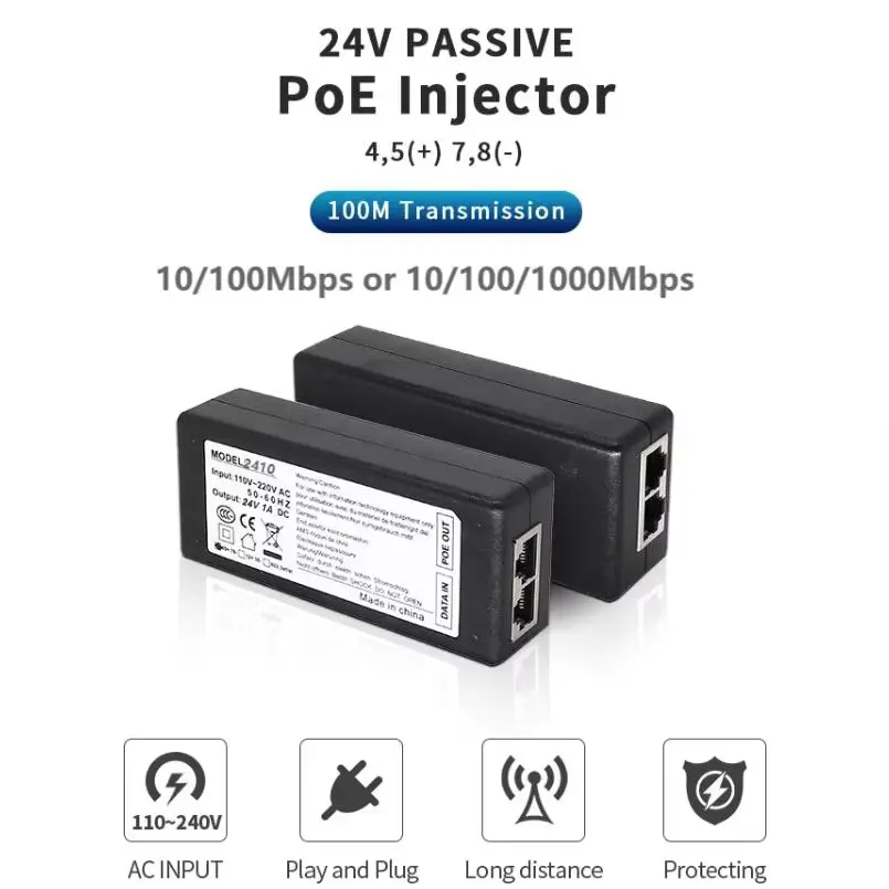 يتم استخدام حاقن POE السلبي بقوة 24 فولت 1 أمبير على نطاق واسع في: