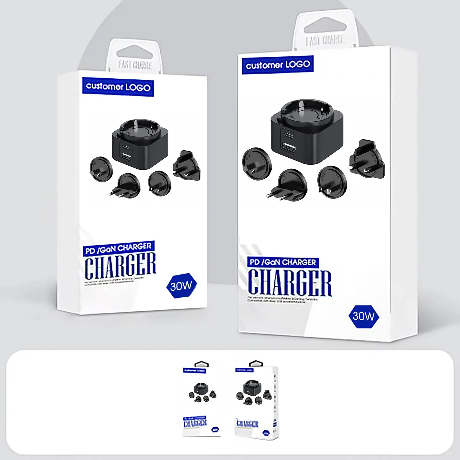شاحن USB جداري PD بقدرة 30 وات مع مقابس قابلة للتبديل |