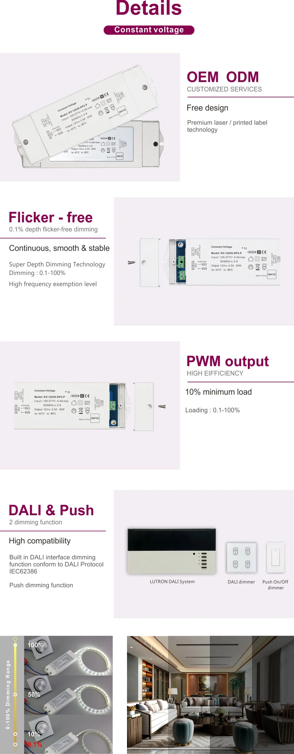 ·نطاق التعتيم: 0-100%، بدء تشغيل LED عند 0.1% ممكن
