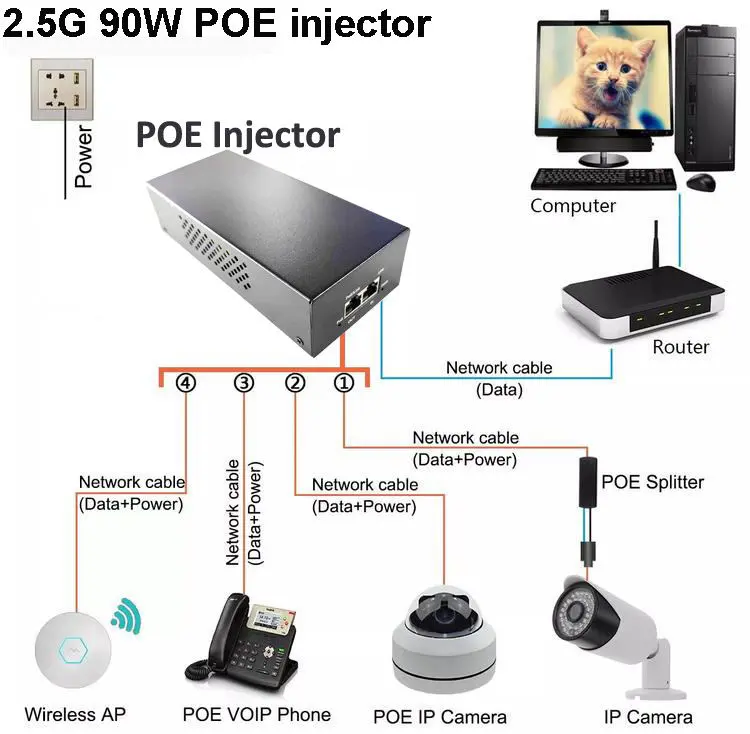 محول PoE Injector PoE بقدرة 48 فولت 90 وات من مصنع Starwell، وهو حل عالي الأداء مصمم لتوفير طاقة موثوقة وتوصيل البيانات عبر شبكة إيثرنت. متوافق تمامًا مع معايير IEEE802.3af/at/bt PoE++، يضمن هذا الحاقن نقل بيانات ثابتًا عالي السرعة 2.5 جيجا ويمكنه تشغيل الأجهزة عالية الطلب مثل كاميرات IP ونقاط الوصول اللاسلكية ومفاتيح الشبكة ومحطات IP. يعمل تصميمه المدمج الذي يعمل بنظام التوصيل والتشغيل على تبسيط عملية التثبيت في المنزل والمكتب والشبكات الصناعية، مما يوفر مصدر طاقة PoE آمن وفعال مع الحد الأدنى من الإعداد.