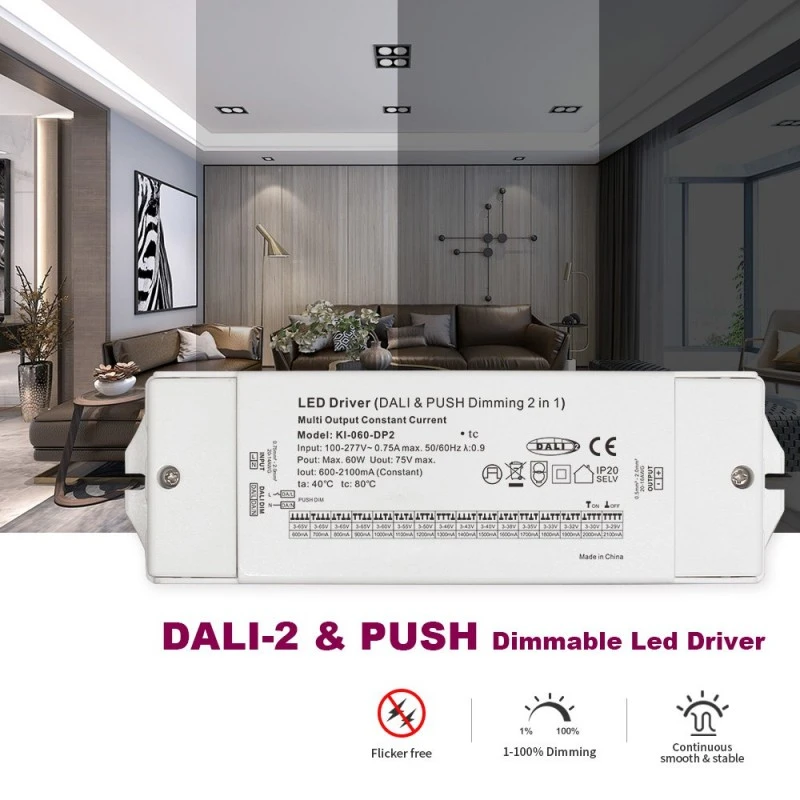 يلتزم برنامج تشغيل STARWELL بتيار ثابت DALI Dimming CCT LED بقدرة 60 واط بشكل صارم بأحدث معايير بروتوكول DALI-2، مما يوفر أكثر من مجرد وظيفة التعتيم الأساسية. فهو يتيح تعتيمًا سلسًا وخاليًا من الوميض وخاليًا من الضوضاء من 0.1% إلى 100%. من خلال نظام DALI، يمكن للمستخدمين بسهولة تحقيق المعالجة الفردية لوحدات الإنارة، والتحكم الجماعي، والإعداد المسبق للمشهد (مثل وضع الاجتماع ووضع الترفيه)، والمهام المجدولة، ومراقبة استهلاك الطاقة. يتكامل برنامج التشغيل هذا بسلاسة في إنشاء أنظمة إدارة ذكية ويعمل كمكون أساسي لإنشاء بيئات إضاءة ذكية فعالة وموفرة للطاقة.