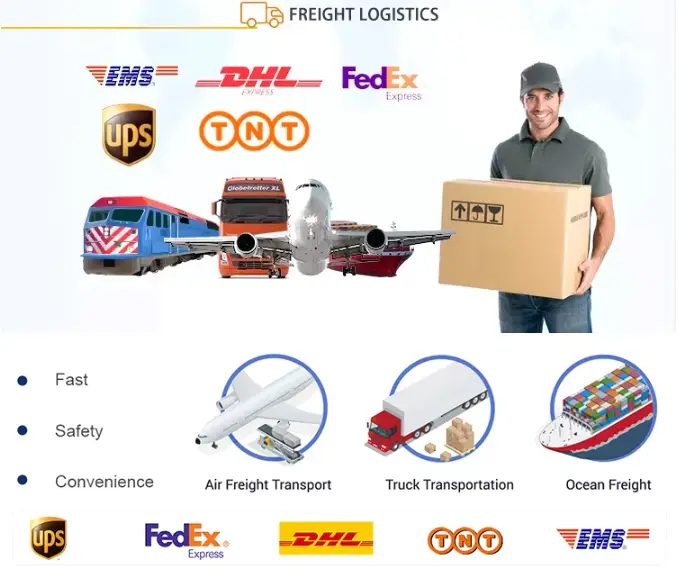 عادة، نقوم بالشحن عن طريق UPS، Fedex، DHL...إذا كان لديك أي متطلبات خاصة للخدمات اللوجستية، فيرجى إبلاغنا مسبقًا.