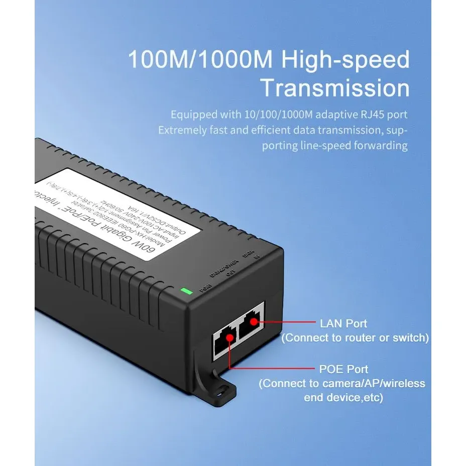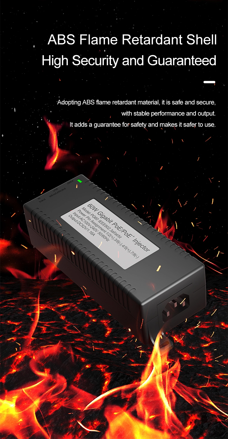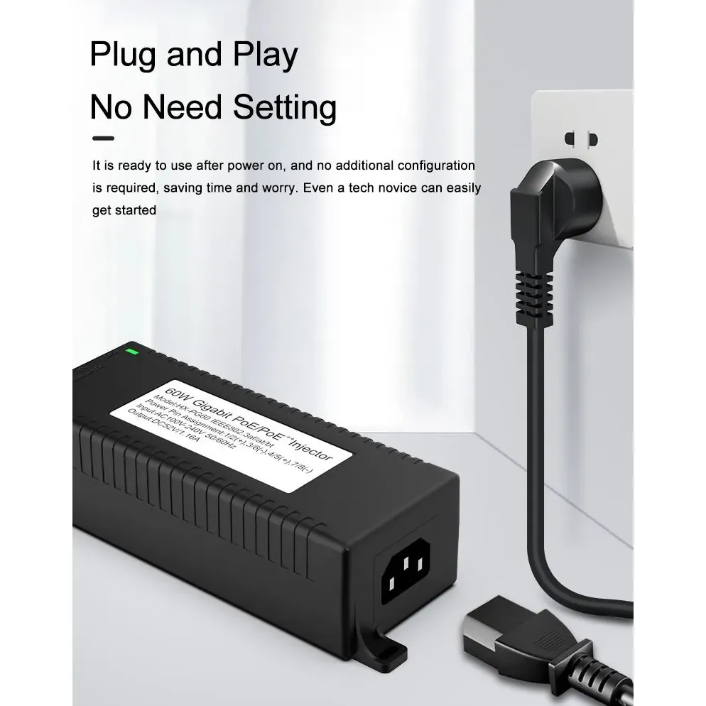 المراقبة الأمنية: يوفر حاقن POE المكتبي Gigabit 60W لأمان كاميرا IP وجهاز الشبكة طاقة ثابتة لكاميرات IP وكاميرات PTZ.