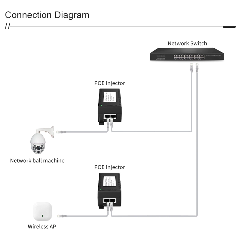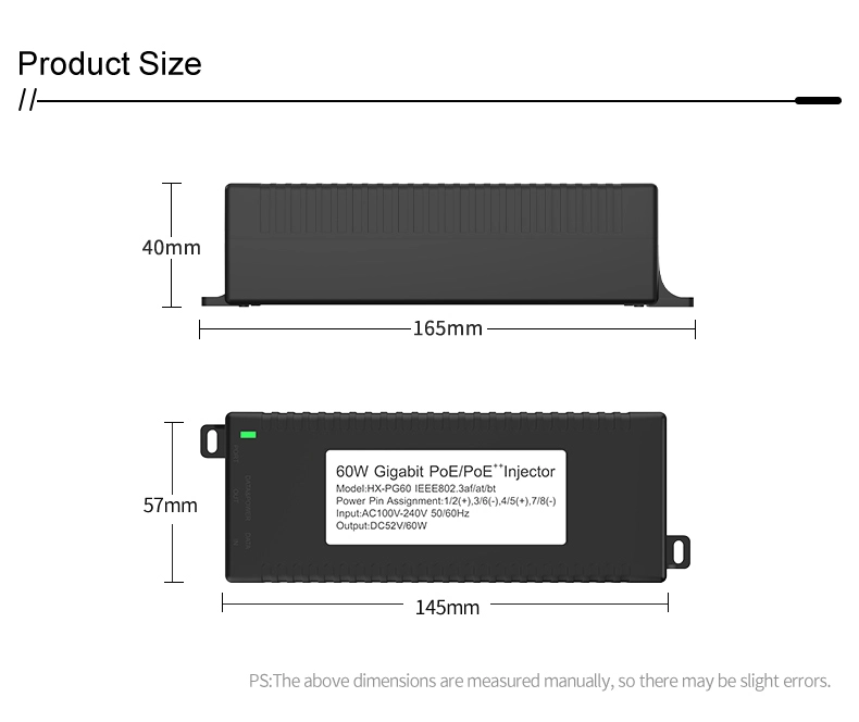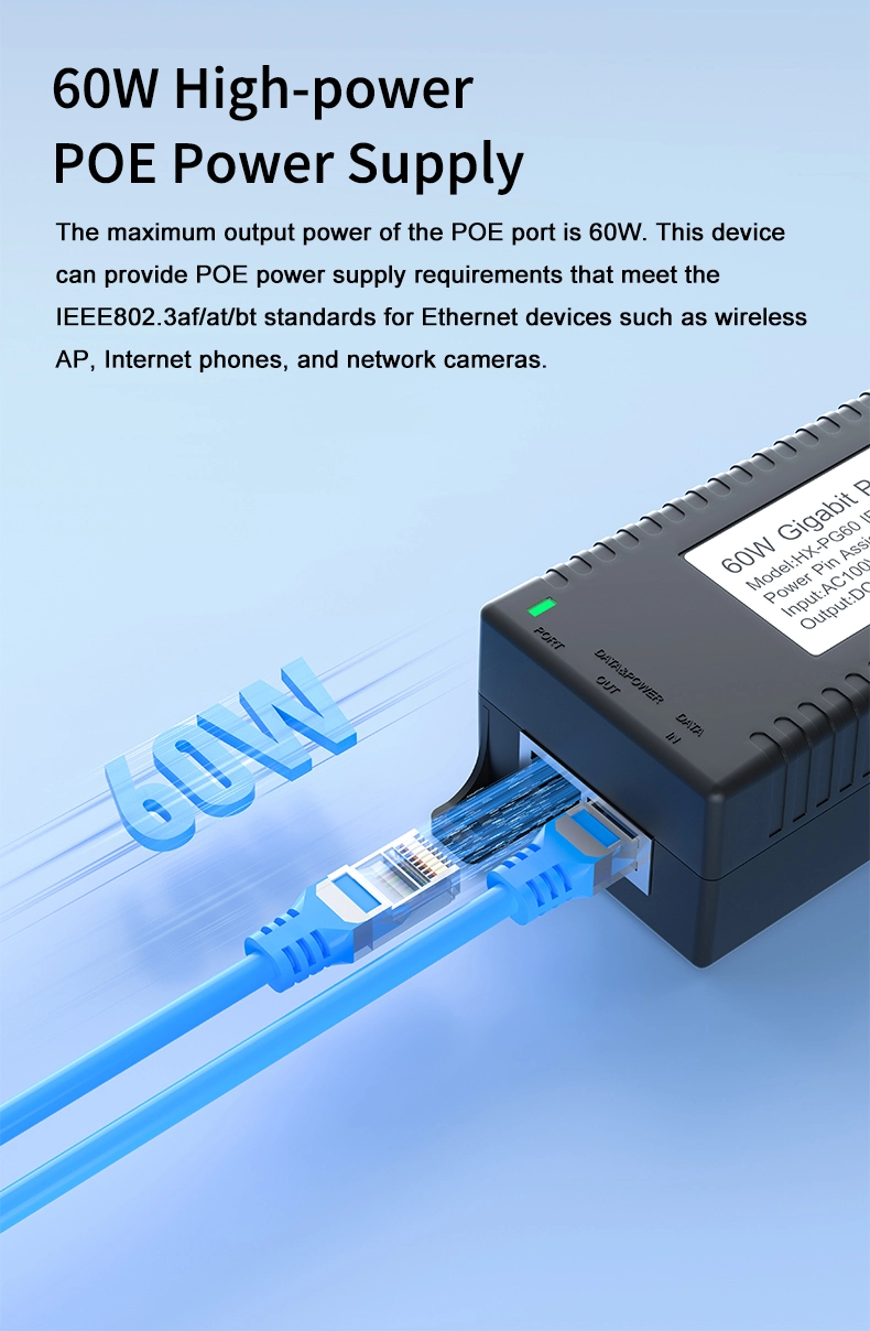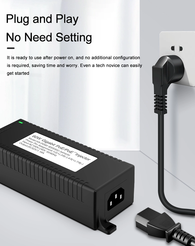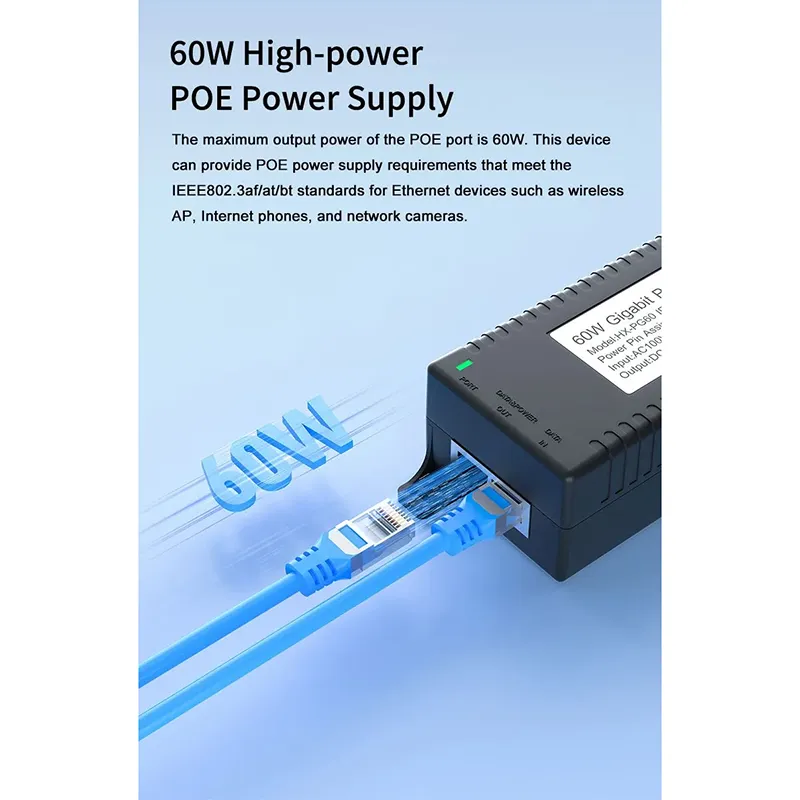 المراقبة الأمنية: يوفر حاقن POE المكتبي Gigabit 60W لأمان كاميرا IP وجهاز الشبكة طاقة ثابتة لكاميرات IP وكاميرات PTZ.