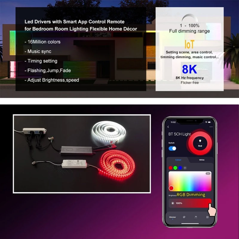 التعتيم الذكي في متناول يدك يتميز بوحدة ZigBee اللاسلكية المدمجة مع تقنية TUYA، ويوفر برنامج التشغيل هذا تحكمًا ذكيًا سلسًا. اضبط السطوع عبر تطبيق الهاتف المحمول أو الأوامر الصوتية من خلال Google Home وAmazon Echo. يضمن مخرج PWM عالي التردد 8 كيلو هرتز تعتيمًا خاليًا تمامًا من الوميض، بينما يسمح نطاق التعتيم 1-100% مع عمق 1% بانتقالات سلسة وخلق أجواء مثالية.