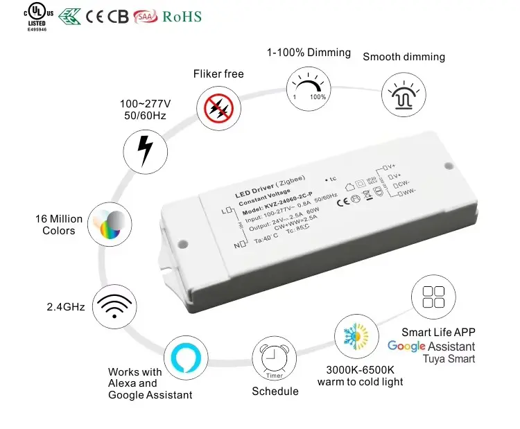 60 واط تويا زيجبي CCT سائق LED عكس الضوء