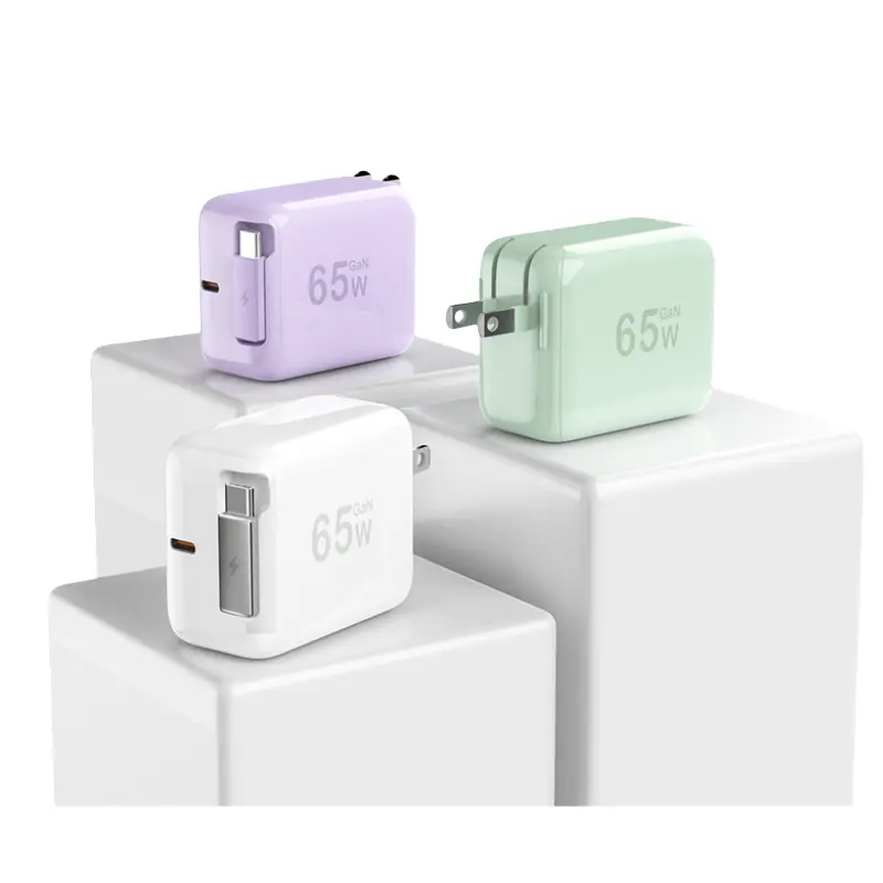 شاحن PD بقدرة 65 وات مزود بكابل USB c قابل للسحب |