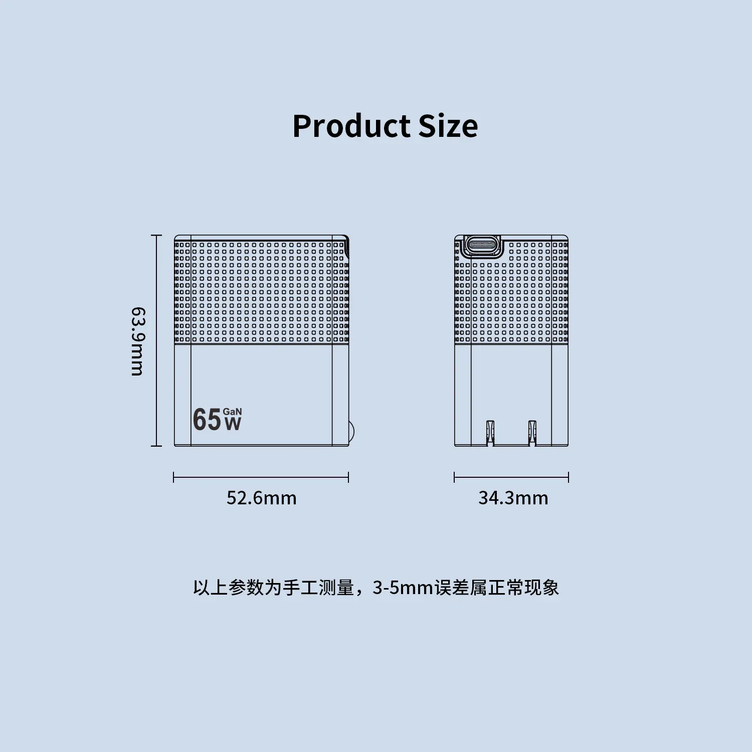 منافذ USB-C مزدوجة: يمكن لشاحن PD 3.0 بقدرة 65 وات شحن جهازين في وقت واحد. أثناء عمليتي الشحن، يتم تخصيص الطاقة بـ 45 واط و20 واط.