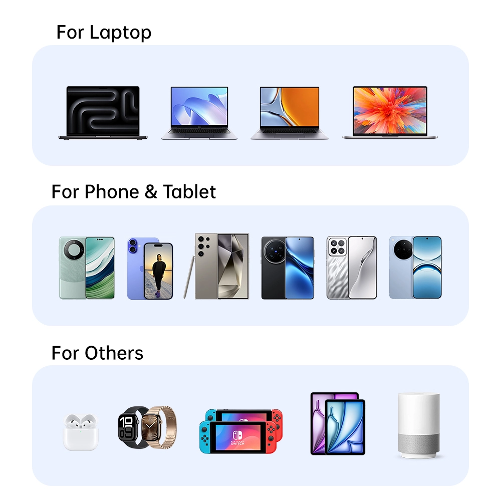 لأجهزة الكمبيوتر المحمول/الكمبيوتر اللوحي/الهاتف/سماعات الأذن/الساعة الذكية/مشغل الألعاب |