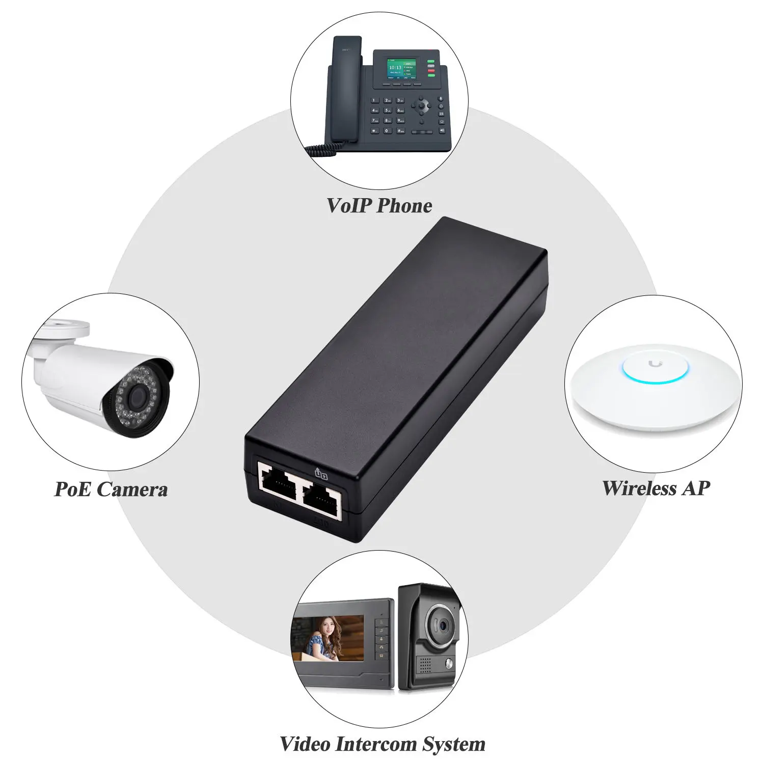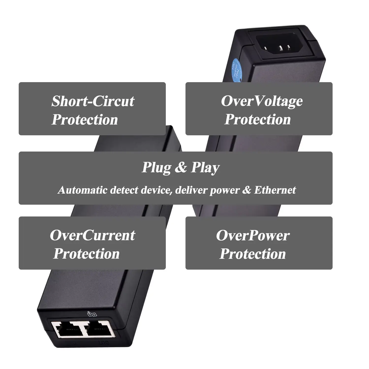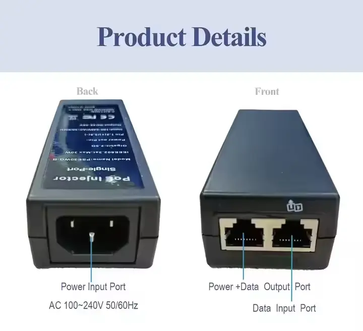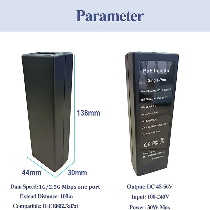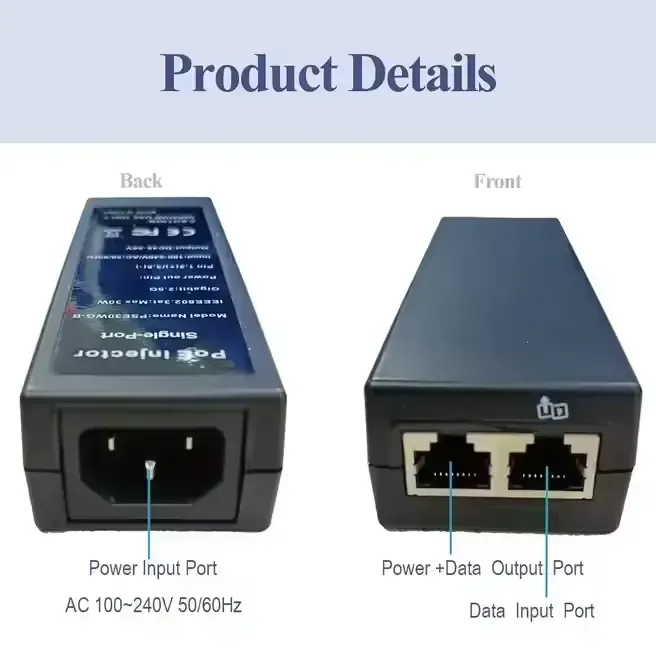 خرج طاقة عالي: يدعم ما يصل إلى 30 وات، ويعمل بكفاءة على تشغيل وتوصيل أجهزة الشبكة مثل كاميرات IP ونقاط الوصول اللاسلكية وهواتف VoIP.