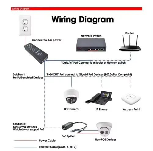 تكامل الطاقة والبيانات: يوفر طاقة ثابتة بقدرة 48 فولت وبيانات كاملة بسرعة 1000 ميجابت في الثانية عبر كابل إيثرنت واحد، مما يؤدي إلى التخلص من الأسلاك ومنافذ الطاقة الإضافية من أجل نشر أكثر نظافة.