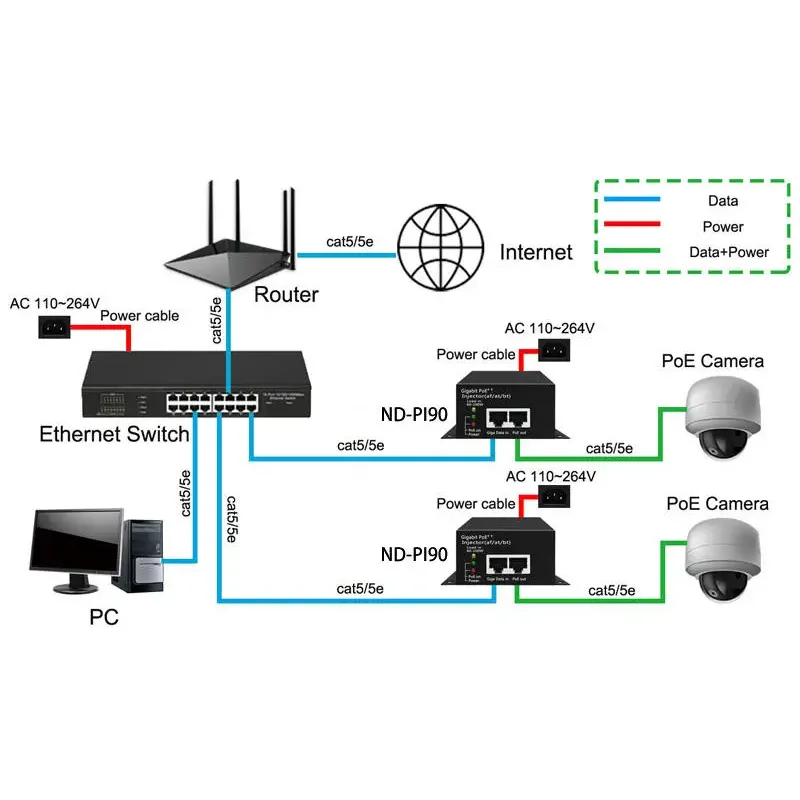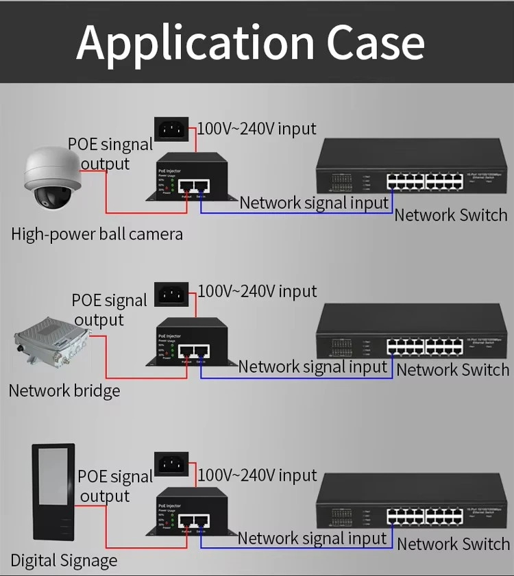 توفر منتجات PoE معايير PoE وPoE+ وPoE++ ومواصفات أخرى لتوفير مصدر طاقة ثابت ونقل بيانات لنقطة الوصول اللاسلكية وكاميرا الشبكة وهاتف IP وغيرها من المعدات، وتبسيط الأسلاك وتقليل التكاليف.