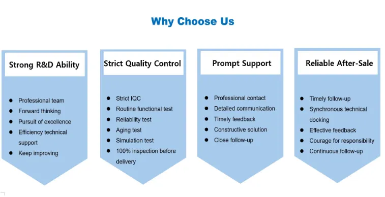 تشير منتجاتنا بشكل صارم إلى المعايير الدولية ومعايير الصناعة العالية بدءًا من التصميم وحتى التدقيق وحتى الإنتاج الضخم، وتتوافق مع المعايير الدولية مثل CE وFCC وRoHS وETL وما إلى ذلك لضمان التوافق والامتثال في السوق العالمية.