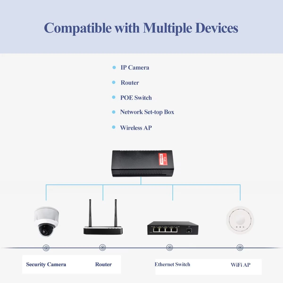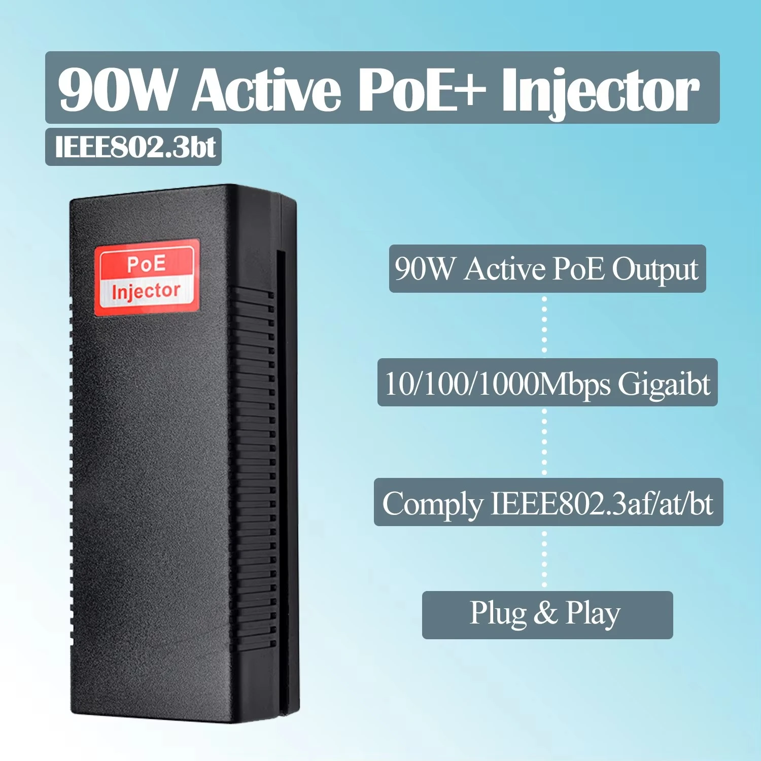 باعتبارها شركة مصنعة محترفة لإمدادات الطاقة في الصين، تقدم Starwell حاقن PoE النشط بقدرة 90 وات، والذي يدعم كلا الوضعين النشط والسلبي. مزود بدوائر ذكية للكشف عن الطاقة، فهو يحدد تلقائيًا متطلبات الطاقة للأجهزة المتصلة ويضبط مخرجاتها وفقًا لذلك؛ علاوة على ذلك، تضمن آلية الحماية من الفشل المدمجة سلامة المحطات غير القياسية.