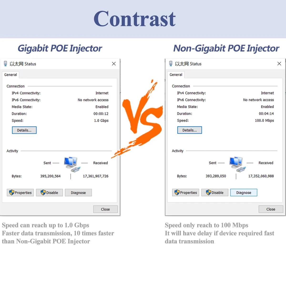 أقصى مسافة نقل هي 100 متر، التوصيل والتشغيل، لا حاجة للإدارة |