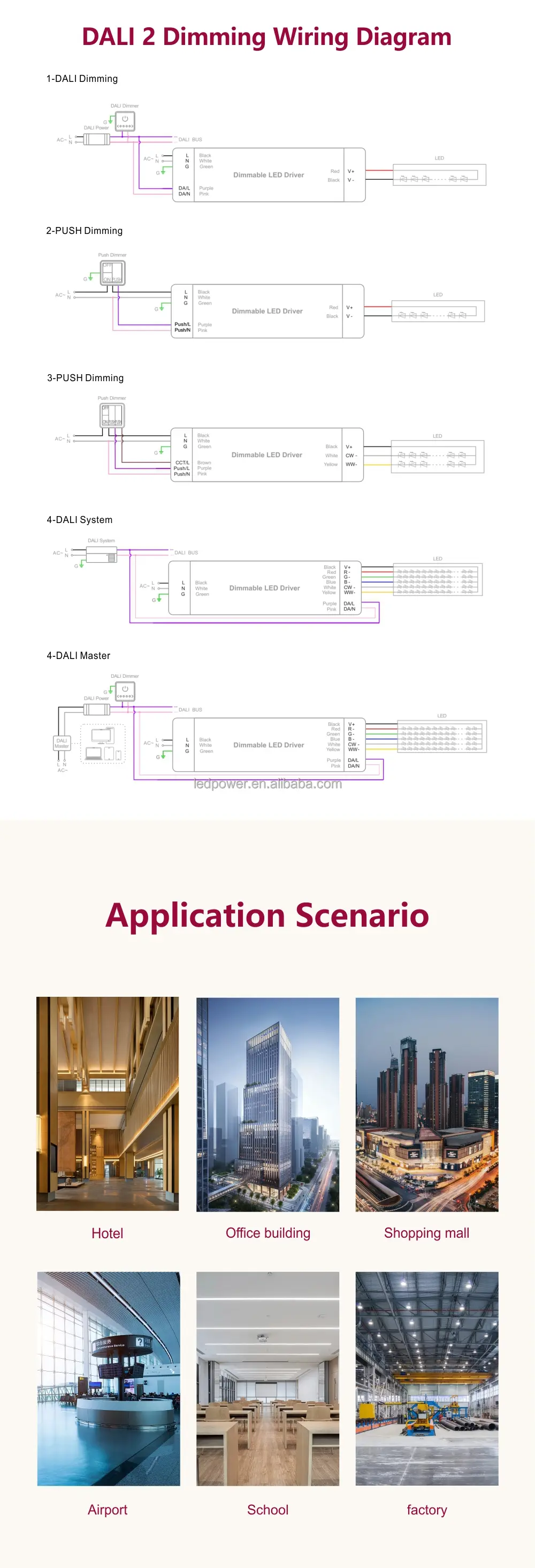 سواء أكان ذلك تعتيمًا بسيطًا لدرجة الحرارة بلون واحد أو برمجة مشهد Rgb Cct ذات 5 قنوات معقدة، يمكن لمزود طاقة السائق هذا الاستجابة بشكل ثابت لتعليمات DALI القياسية. وهذا يعني أنه يمكنك دمجه بسهولة في أي نظام إضاءة ذكي من DALI لتحقيق التحكم في المجموعة والبرمجة الموقوتة وربط المستشعر. باعتباره مشغل LED قابل للتعتيم بجهد ثابت 12-24 فولت DALI، فإن أدائه الكهربائي المتميز يضمن أن شرائط الإضاءة LED تعمل بثبات وكفاءة لفترة طويلة.