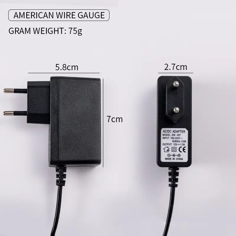 محول الطاقة المثبت على الحائط من Starwell عالي الجودة في الاتحاد الأوروبي هو محول طاقة مدمج وعالي الكفاءة ومثبت على الحائط مصمم لتحويل التيار المتردد (AC) من مقبس الحائط القياسي إلى مخرج تيار مباشر ثابت ومنظم بقدرة 12 فولت (DC). مع أقصى قدرة إخراج 1.5 أمبير.