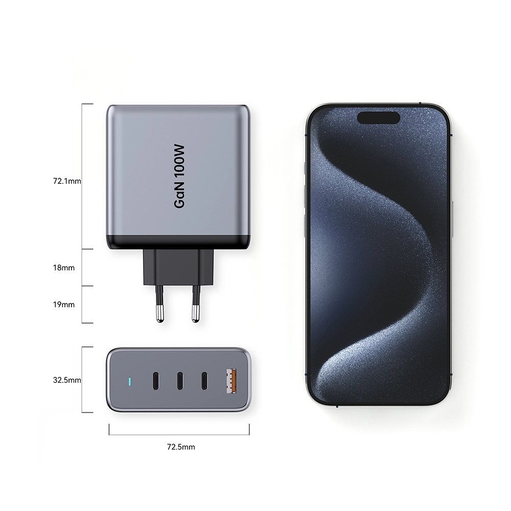 شاحن سريع GAN 100W لأجهزة الكمبيوتر المحمول بمواصفات CE