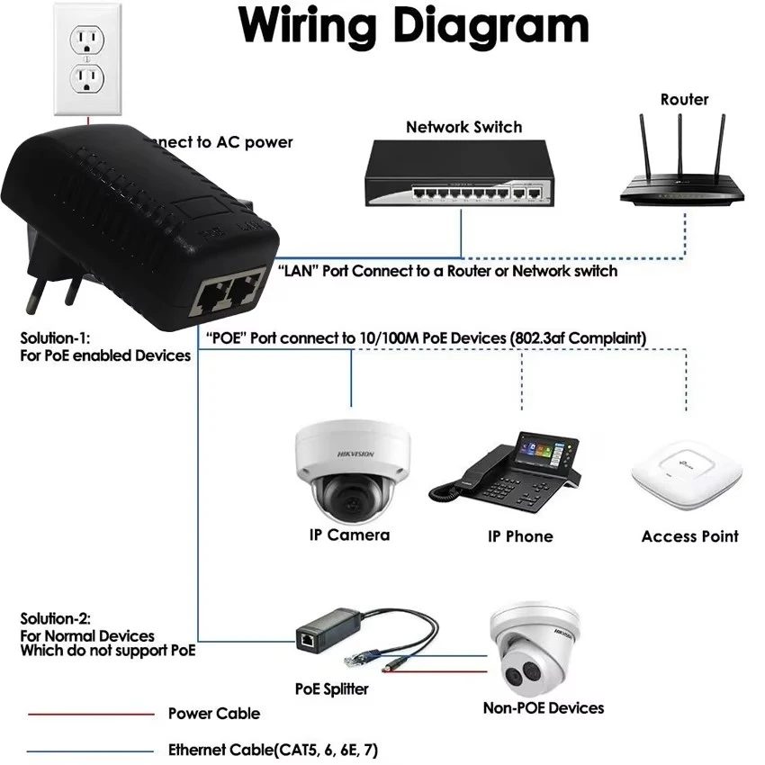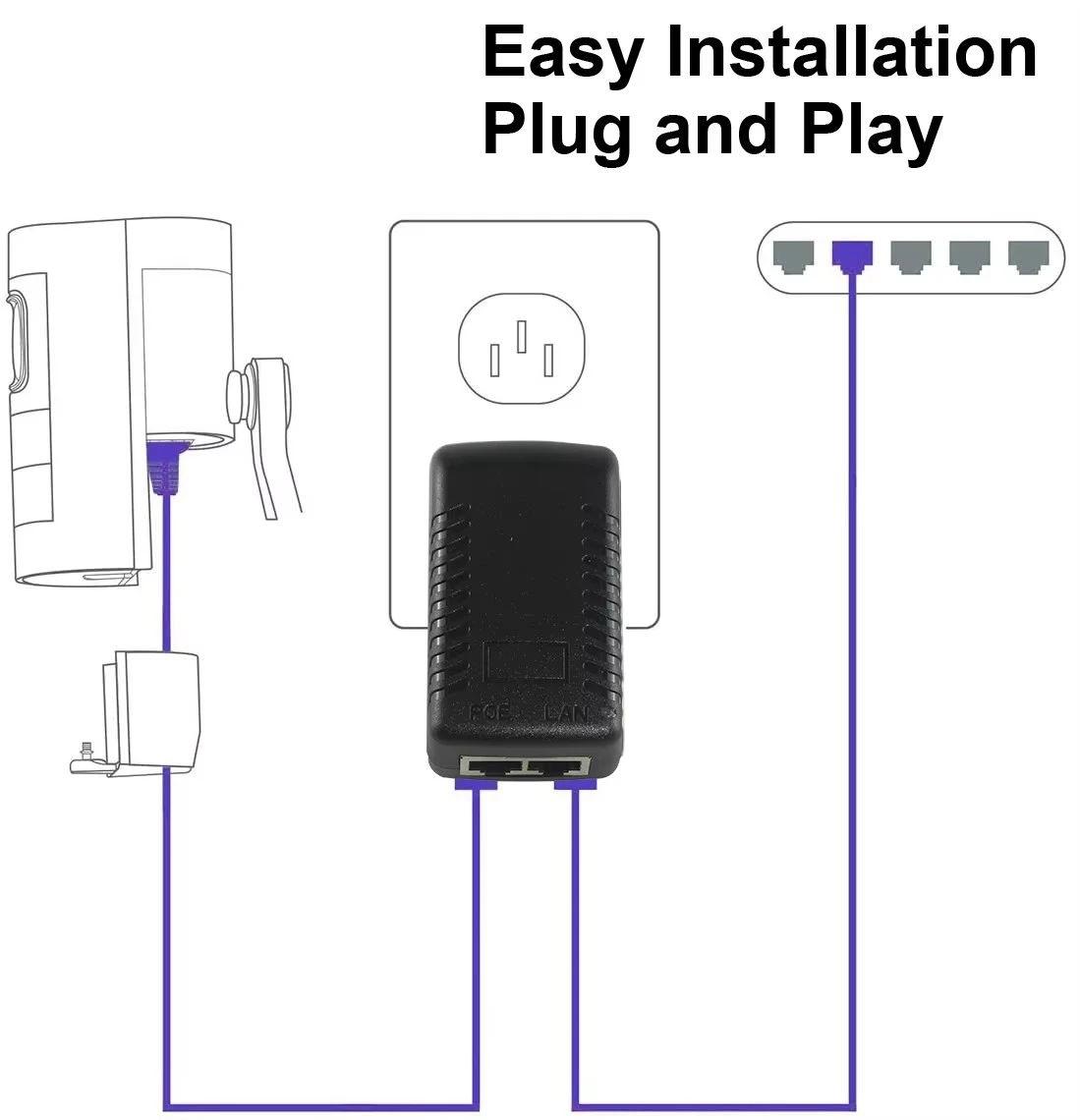 · التوصيل والتشغيل: لا يتطلب أي تكوين. ما عليك سوى توصيل كابل LAN من المحول الخاص بك وكابل PoE بجهازك.