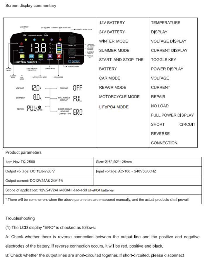 واجهة سهلة الاستخدام: شاشة LED واضحة ومشرقة تشير بشكل بديهي إلى حالة الشحن وصحة البطارية وأي أخطاء محتملة، مما يتيح لك التحكم الكامل.