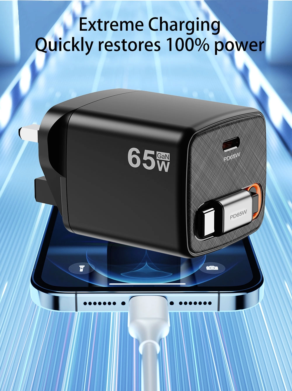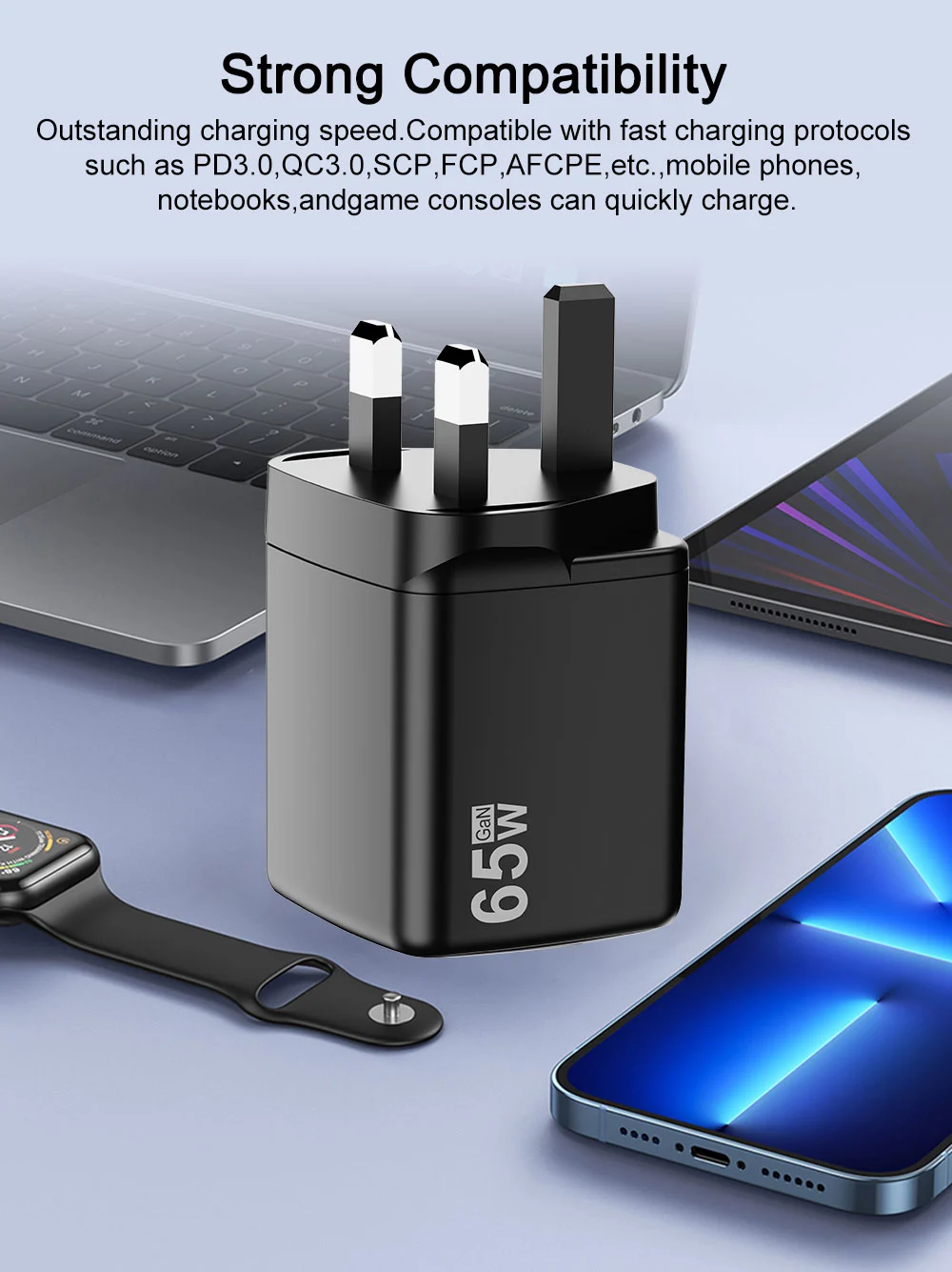 - شحن سريع: يعمل مخرج 65 واط على تقليل وقت الشحن، مما يؤدي إلى تشغيل أجهزتك بسرعة.