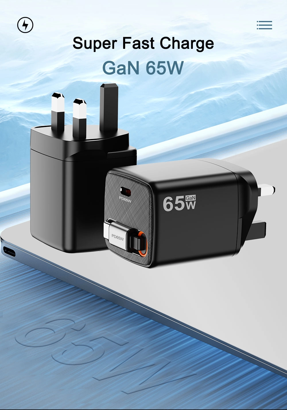 المملكة المتحدة نوع المكونات شاحن سريع 65 واط |