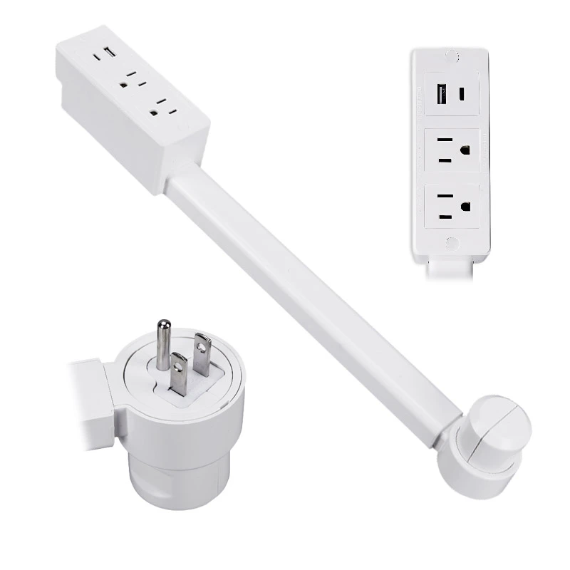 مقبس حائط قابل للتعديل: يمكن تعديل طول قابس موسع منافذ الحائط الأمريكية بحرية لتلبية احتياجات مصدر الطاقة لمسافات طويلة، مما يحافظ على سطح المكتب مرتبًا. ويمكن استخدامه مع المقابس الأرضية لرفع ارتفاعها، مما يلغي الحاجة إلى الانحناء للشحن. يعمل الجزء الخلفي من المقبس أيضًا كحامل هاتف مناسب لسهولة المشاهدة أثناء الشحن.